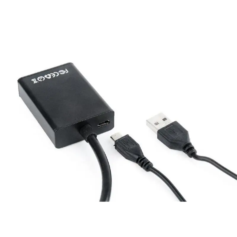 Компактний відео-аудіо адаптер. Перетворює відео потік VGA в цифровий HDMI сигнал + 3.5 мм аудіо. Роздільна здатність зображення до 1920 x 1200 пікселів при 60 Гц, сумісно з версією HDMI v.1.4. Вихідна роздільна здатність відео не погіршується щодо вхідного. USB-порт живлення.