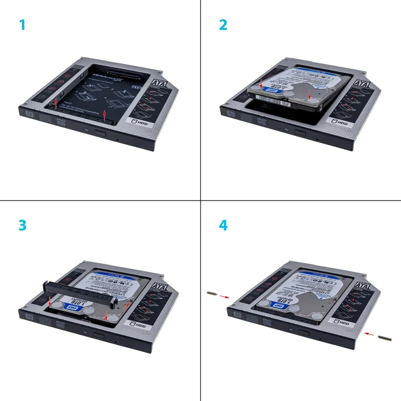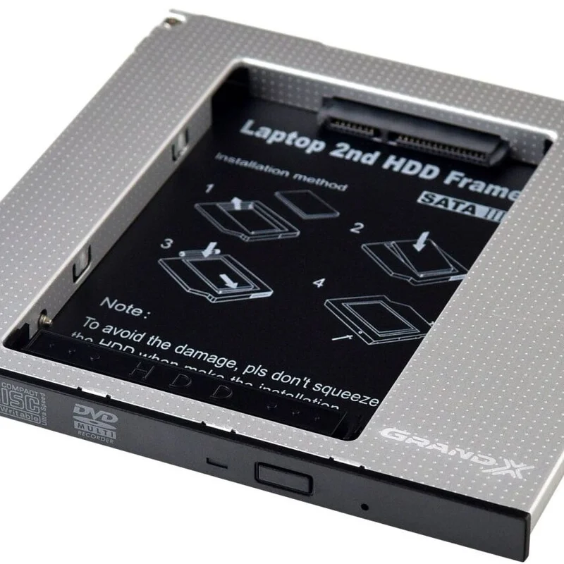 Адаптер підключення Grand-X HDD 2.5 "в відсік приводу ноутбука SATA3 Slim 9.5mm (HDC-26) Адаптер призначений для підключення другого жорсткого диска (наприклад SSD) в ноутбук замість приводу CD / DVD / Blue Ray. Пристрій Plug & Play - підключив і працює. Швидке і надійне підключення другорядного жорсткого диска. Повністю інтегрований в ноутбук, кабелі / блоки живлення / програмне забезпечення драйвера не потрібні. Після установки двох HDD з’явиться можливість установки 2-ий операційної системи на додатковий жорсткий диск. Основні характеристики: Висота адаптера 12.7 мм. Інтерфейс HDD: SATA (2.5 "SATA або SSD диски). Ноутбук / Материнська плата Інтерфейс: SATA3 Підходить для ноутбуків: Acer, Asus, HP, Dell, Lenovo, Samsung, Toshiba, NEC. Розміри: 126 х 127 x 12 мм.