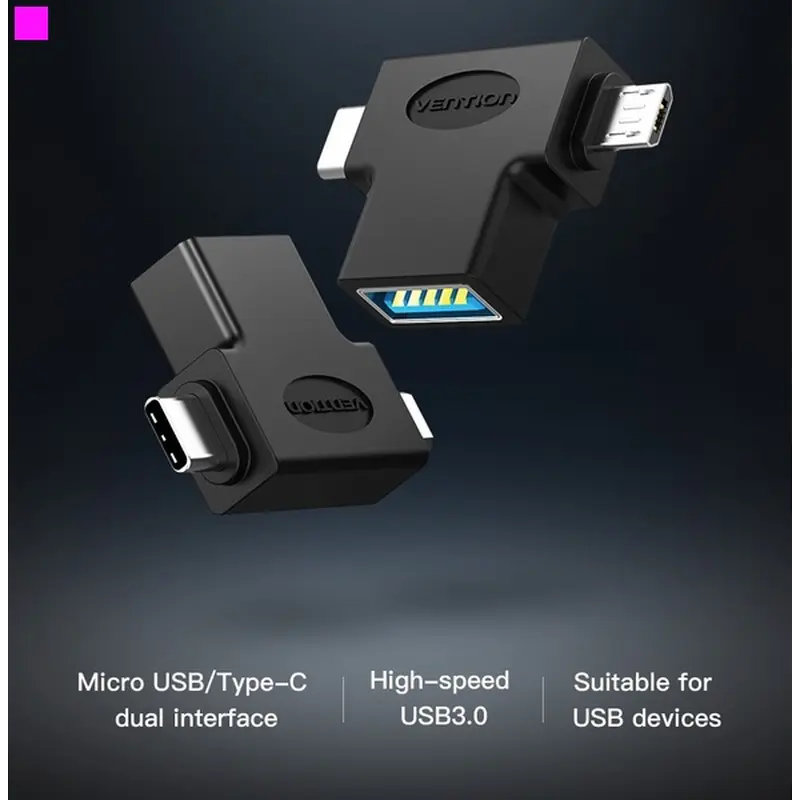 Адаптер Vention USB - USB Type-C + micro USB V 3.0 (F/M) Black (CDIB0)