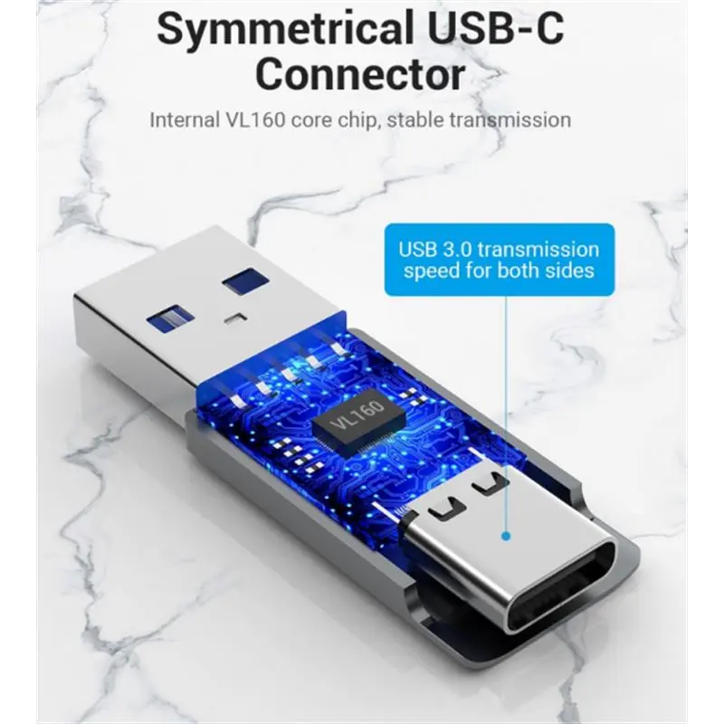 Цей адаптер Vention – гарне рішення, коли у вас є проблема з несумісними кінцями кабелю. Рішення дає вам штекерний роз’єм USB-C і гніздо USB-A. Стандарт цього продукту – USB 3.0. Сірий колір доповнюватиме вашу електроніку або інші продукти. Підключати смарт-пристрої за допомогою OTG.
