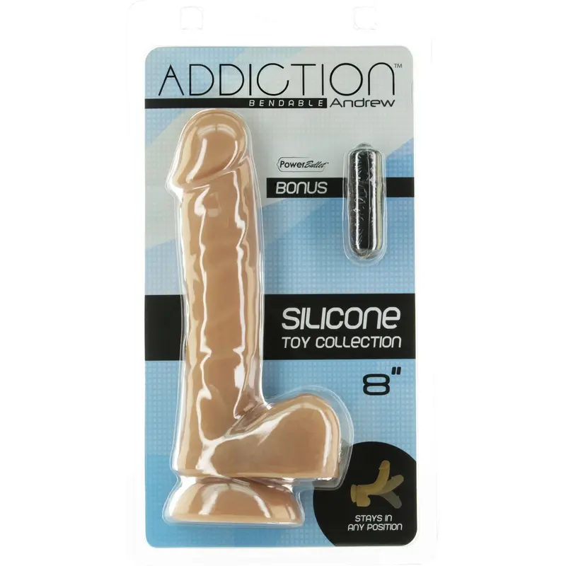 Фаллоимитатор Addiction Andrew изгибается во всех направлениях! Этот премиальный силиконовый фаллоимитатор имеет гладкую шелковистую поверхность и упругий ствол. С помощью присоски в основании закрепите этот фаллоимитатор на гладкой плоской поверхности или используйте со страпоном с O-ring креплением.