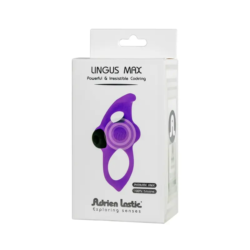 Adrien Lastic Lingus MAX Violet эрекционное виброкольцо с язычком для стимуляции клитора, 9.5х3 см