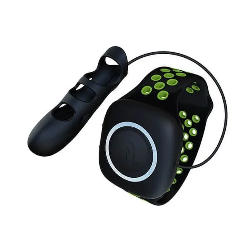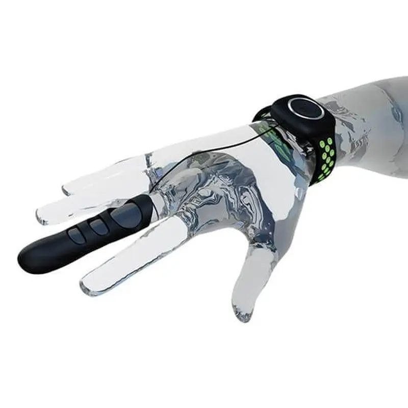 Пульт управління і зарядка знаходяться на спеціальному браслеті, який елегантно кріпиться на зап'ясті і з'єднується з самою насадкою силіконовим шнурком, що забезпечує фіксацію насадки на пальці. Завдяки цьому виробнику вдалося максимально зменшити розмір самої насадки, що робить її більш зручною і маневреною. Вся вібрація сконцентрована на кінчику пальця. Всього 10 режимів вібрації, який ви перемикаєте, натискаючи кнопку на браслеті.