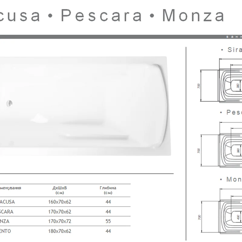 Акрилова ванна Redokss San PESCARA 1700х700