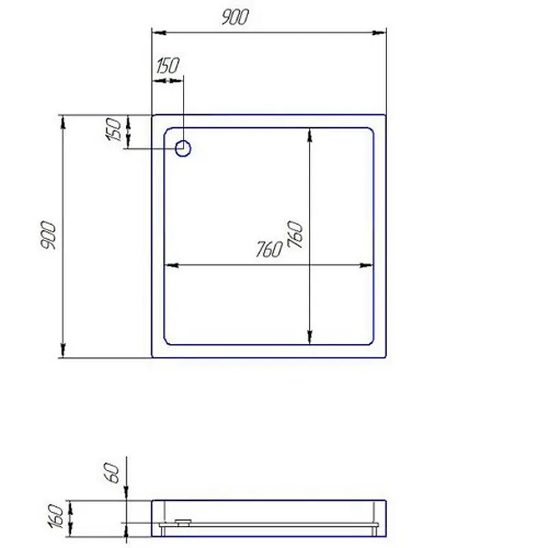Акриловий душовий піддон SANTERNO 900х900