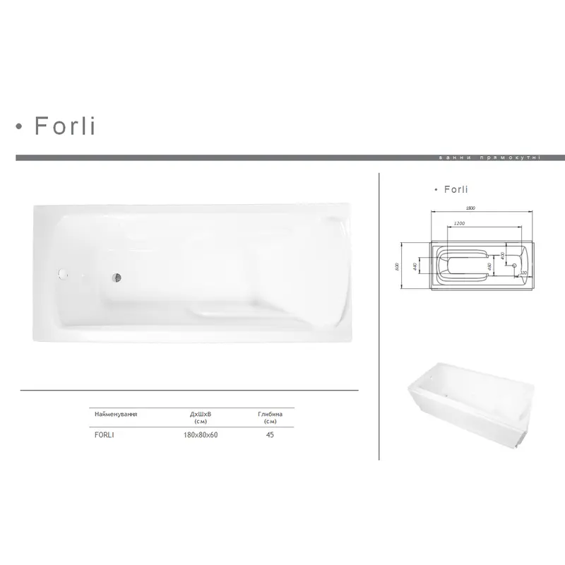 Акрилова ванна Redokss San FORLI 1800х800 - зроблена з литого акрилу – це надійне та сучасне рішення для вашої ванної кімнати. Завдяки армованій конструкції, вона має суцільнолиту структуру, високу міцність, стійка до тріщин, подряпин та деформацій. Легкість та простота установки:Акрилова ванна має невелику вагу, що полегшує її транспортування та встановлення. Це особливо важливо для багатоповерхових будинків та невеликих ванних кімнат.Теплоізоляція:Акрил має відмінні теплоізоляційні властивості, завдяки чому вода в акриловій ванні остигає набагато повільніше, ніж у металевій. Це дозволяє довше насолоджуватися теплою водою та економити на підігріві.Безшумність:Поглинає звук води, що ллється, роблячи прийняття ванни більш комфортним і тихим.Гігієнічність:Акрилова поверхня гладка та непориста, що перешкоджає розмноженню бактерій та грибків. Легко чиститься і не потребує особливого догляду.Стійкість до пошкоджень:Ванна виготовляється з високоміцного литого акрилу, стійкого до подряпин, сколів та інших ушкоджень. Навіть якщо на поверхні ванни з'явиться невелика подряпина, її можна легко усунути за допомогою спеціальних засобів.Довговічність:При правильному догляді акрилова ванна служитиме до 15 років і більше, зберігаючи свій первинний зовнішній вигляд та функціональність.Товщина стінки ванни Redokss San - від 8мм до 1см, додатково посилене армоване дно.!!! Увага, у комплектацію ванни не ходить каркас та ніжки. Для замовлення звертайтесь до менеджера.