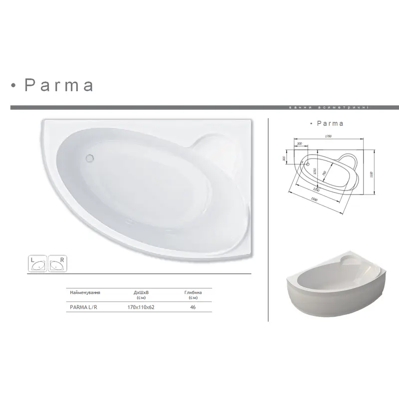 Акрилова ванна Redokss San PARMA 1700x1100 ліва
