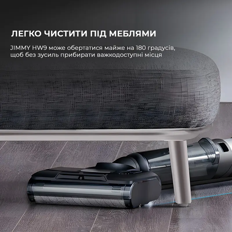 Акумуляторний миючий пилосос Jimmy HW9 Пилосос нашого часу асоціюється з багатофункціональним пристроєм, за допомогою якого можна не тільки пилососити покриття для підлоги та килими, але і мити плоскі покриття для підлоги, такі як ламінат, паркет, плитку або лінолеум. Фірма виробник Jimmy йде в ногу з часом та потребами людства та розробила та представила сучасний гаджет для прибирання та миття акумуляторний Jimmy HW9. Серед основних характеристик пристрою слід виділити кілька ключових: Швидке прибирання без дротів. Миючий обертовий валик для підлоги. Функція самоочищення. Функція стерилізації іонами срібла. Сучасний двигун Конструктивною особливістю моделі Jimmy HW9 є потужний вбудований двигун, який захищений від попадання вологи та пилу. Завдяки такому рішенню вдалося підвищити потужність на 15 відсотків порівняно з мотором попереднього покоління. Двигун здатний з частки секунди розвивати високі обороти з достатнім моментом, що крутить, для якісного прибирання і всмоктування пилу. Пилососити, мити та чистити і все це разом Композитний валик для твердої підлоги у поєднанні з двома режимами очищення потужно та ефективно очищає підлоги від бруду, волосся, жиру, залишків їжі та іншого вологого та сухого сміття. Гнучка конструкція для прибирання у кожному куточку Щіточна частина корпусу пилососа має похило поворотне кріплення, яке дозволяє не тільки зручно маневрувати різними меблями, але й полегшує прибирання під диванами, кріслами, столами та іншими домашніми меблями. Поворотна частина може обертатись на 180 градусів. Ширша щітка для ретельного прибирання Валики для прибирання кріпляться дуже близько до країв корпусу пилососа, за рахунок чого досягається максимальна ефективність прибирання вздовж стиків підлоги та стін, а також уздовж меблів. Більше не буде потреби щось будувати після основної процесії прибирання. Зручний розподіл вологи перед пилососом Під час вологого прибирання ви можете самостійно контролювати необхідну кількість води для подачі перед щіткою. Таким чином, можна розумніше витрачати запас води в баку для прибирання складних або слабких забруднень. Вологий миючий ролик ретельно витирає будь-які забруднення на підлоговому покритті. Розумний світлодіодний екран Переглядайте інформацію в реальному часі, таку як час роботи, режим живлення та інше на світлодіодному екрані. Стерилізація сріблом Бак для чистої води використовується для подачі вологи безпосередньо перед щіткою для миття підлоги. У цьому резервуарі встановлено пристрій, що генерує іони срібла. Така система дозволяє знезаражувати воду для подальшого використання та миття підлог. Насичена іонами срібла вода дезінфікує поверхню та вбиває бактерії на своєму шляху. Миючий пилосос Jimmy HW9 здатний прибрати навіть невидимі забруднення. Самостійне самоочищення валика Наприкінці вологого прибирання все, що вам потрібно зробити, - це встановити пилосос на станцію зберігання та зарядки і включити режим самоочищення. Після чого розпочнеться спеціальна процедура, в ході якої пилосос самостійно очистить миючий валик від бруду, промиє його чистою водою та очистить від зайвої вологи. Така система дозволяє безконтактно промивати ролик після збирання та зберігати пристрій у чистоті мінімізуючи ризики утворення неприємних запахів та іншого. Роздільні рез