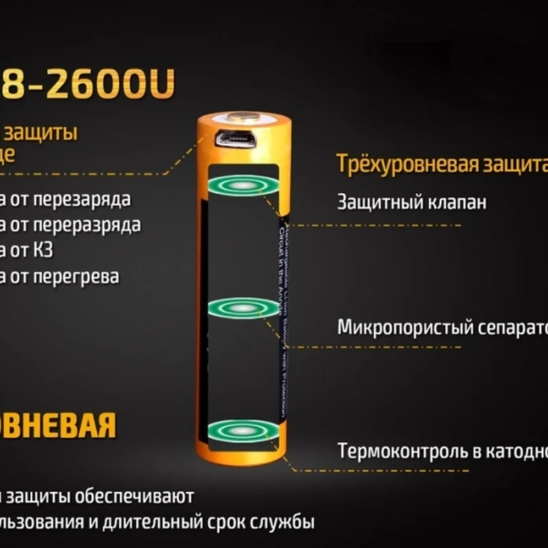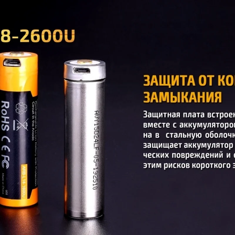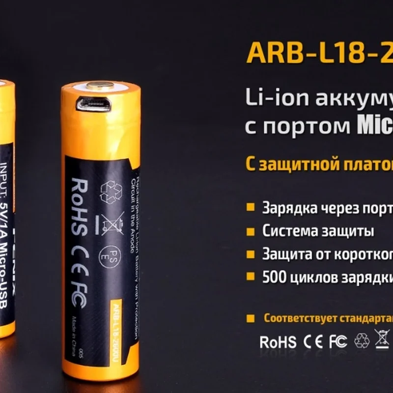 Акумулятор 18650 Fenix (2600 mAh) micro usb зарядка