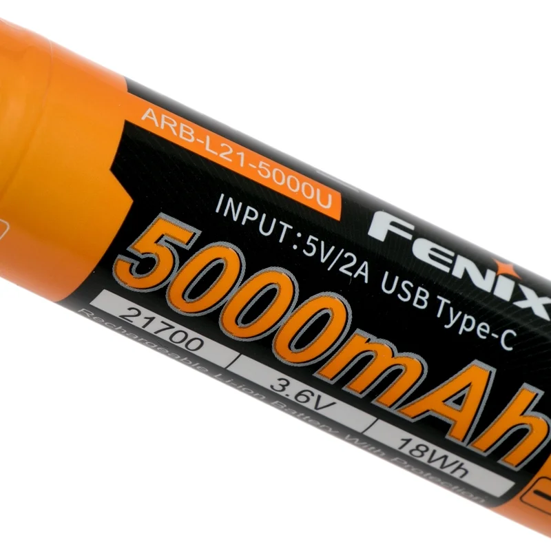 Акумулятор Fenix ARB-L21-5000u форм-фактора 21700 має вбудований порт зарядки Type-C. Ємність акумулятора досягає 5000 міліампер-годин. Батарейка може бути використана в ліхтарях і інших пристроях, які працюють автономно. Вона оснащена платою захисту від перезарядження, перерозряду.