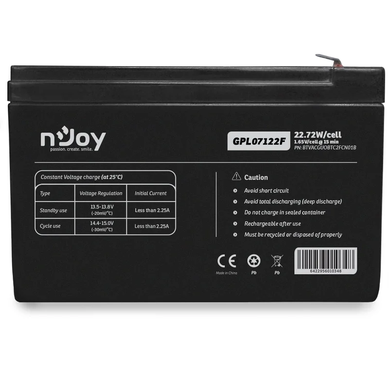 Акумуляторна батарея Njoy GPL07122F 12V 7AH (BTVACGUOBTC2FCN01B) AGM