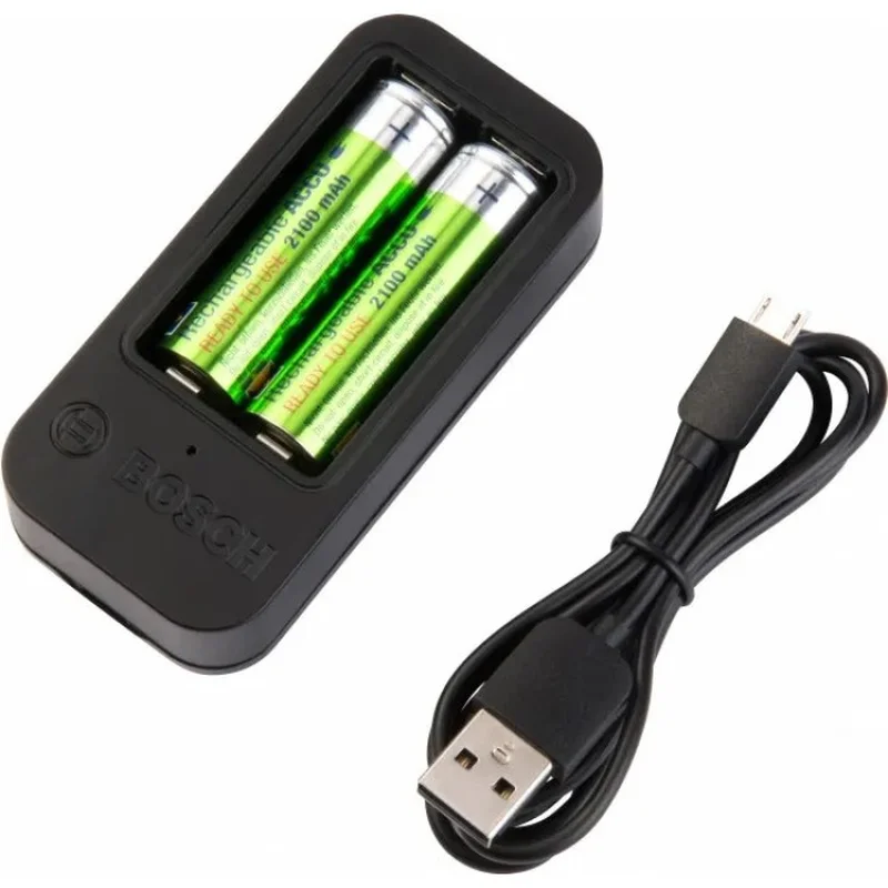 акумулятори 1.2 В HR06 AA (2 шт.), блискучі стержні (5 шт.), кольорові стержні (7 шт.), прозорі стержні (8 шт.), зарядний пристрій USB, шнур USB