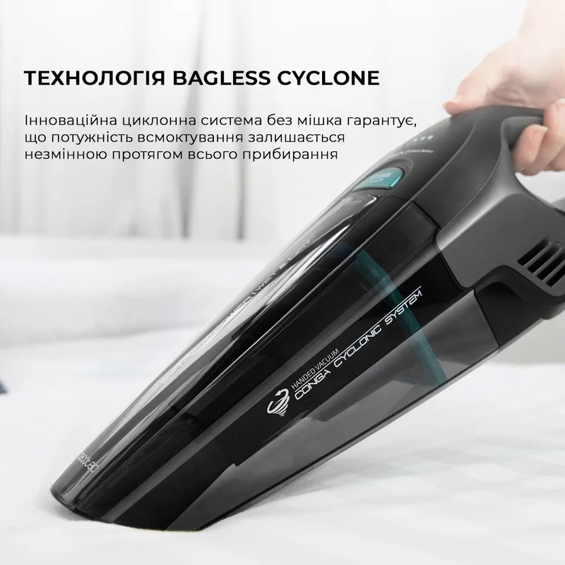 Легкий ручний пилосос CECOTEC Conga Immortal Extreme Suction з акумулятором потужністю 22,2 В допоможе швидко і зручно прибрати сміття і вологу з найрізноманітніших поверхонь. Він також ідеально підходить для власників домашніх тварин. Потужний акумулятор З акумулятором 22,2 В пилосос працює 25 хвилин на одному заряді. За цей час ви встигнете забрати всі проблемні ділянки в квартирі або повністю очистити салон автомобіля. Аксесуари для різних поверхонь і щітка для вовни У комплекті з Ручним акумуляторним пилососом CECOTEC Conga Immortal ExtremeSuction поставляються змінні насадки для прибирання меблів, що значно розширює його функціонал, а також щітка для вовни. Подовжуюча трубка З подовженою гнучкою трубкою можна легко прибрати в кутах. Вона особливо корисна для власників автомобілів, так як відмінно підходить для ущелин і внутрішніх відділень. Циклонічна система фільтрації без мішка З циклонічної системою фільтрації пилосос не втрачає з часом свою ефективність. Замість пилозбірника він оснащений зручним резервуаром для сміття. Зарядка Ваш ручний акумуляторний пилосос CECOTEC Conga Immortal ExtremeSuction завжди на ходу з зарядної базою, яка також виконує функцію місця для зберігання. У будь-який момент він готовий до роботи з повним зарядом! Резервуар об'ємом 500 мл Пилосос підходить для прибирання не тільки пилу, але і рідин. Резервуар ємністю 500 мл компактний і гігієнічний, його легко спорожняти, можна потім промити, просушити і назад закріпити на пристрій.