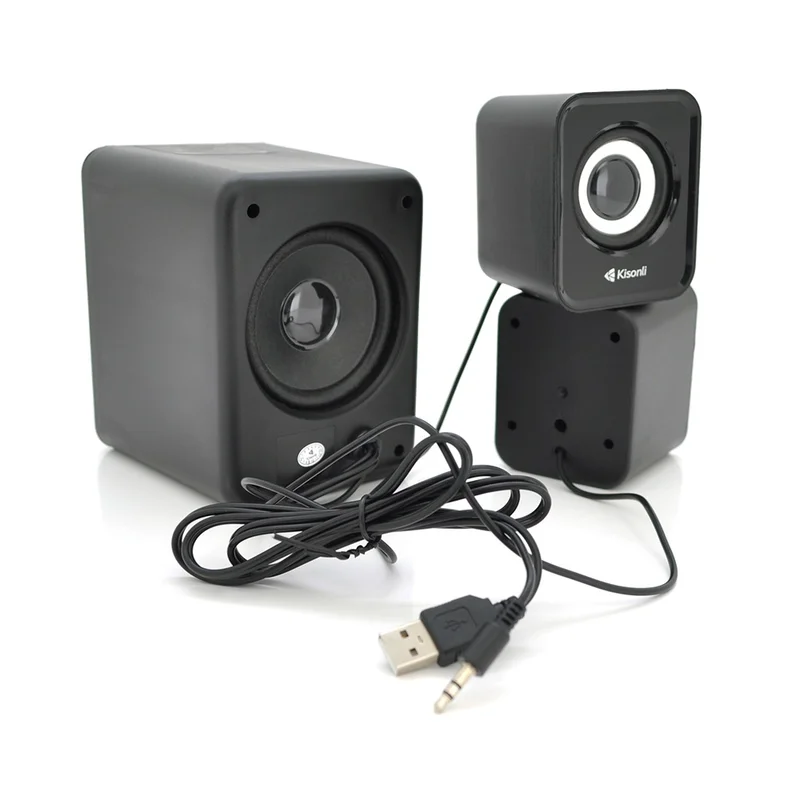 Якість звуку відіграє важливу роль під час перегляду фільмів та прослуховування музики. Різні шуми та спотворення здатні зіпсувати враження навіть від найшикарнішого блокбастера та захоплюючого шутера. Потужний сабвуфер акустичної системи Kisonli посилить звучання ваших улюблених музичних композицій глибоким та насиченим басом. Компактність заощадить місце на робочому столі без втрати якості звуку. Живлення від USB – не потрібна розетка 220 В. Достатньо вільного USB порту ноутбука, комп’ютера або зарядного пристрою. Стильний дизайн чудово поєднується з технікою та аксесуарами робочого столу.