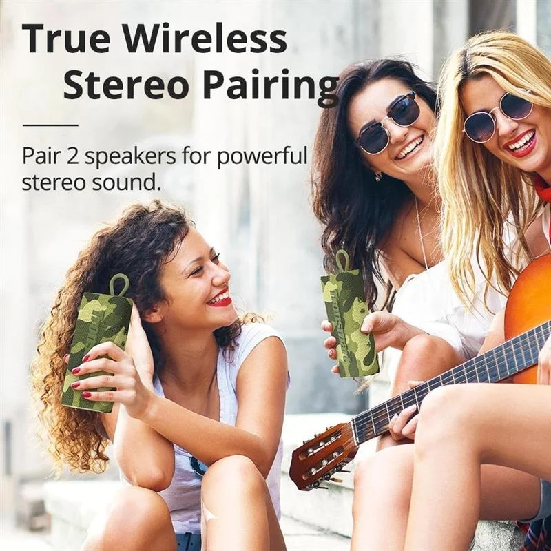 Неперевершений стереозвук. Подвійні повночастотні динаміки з подвійним пасивним радіаторами забезпечують тональний баланс з багатою деталізацією високих частот і пронизливих басів. Елегантну тканинну ручку зручно носити з собою всюди. Ексклюзивний SoundPulse Audio. Забезпечує насичене звучання аудіо з винятковою чіткістю. Справжнє бездротове стерео сполучення Забезпечує більш надійне і плавне бездротове потокове передавання. IPX7. Візьміть його з собою на природу, не турбуючись про пісок і бризки води. Зарядка Type-C. Забезпечує вражаюче відтворення звуку при більш швидкій, стабільної та безпечної зарядки.