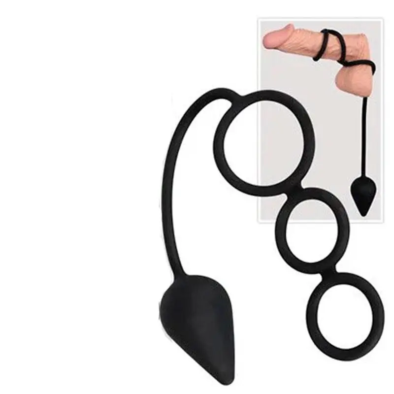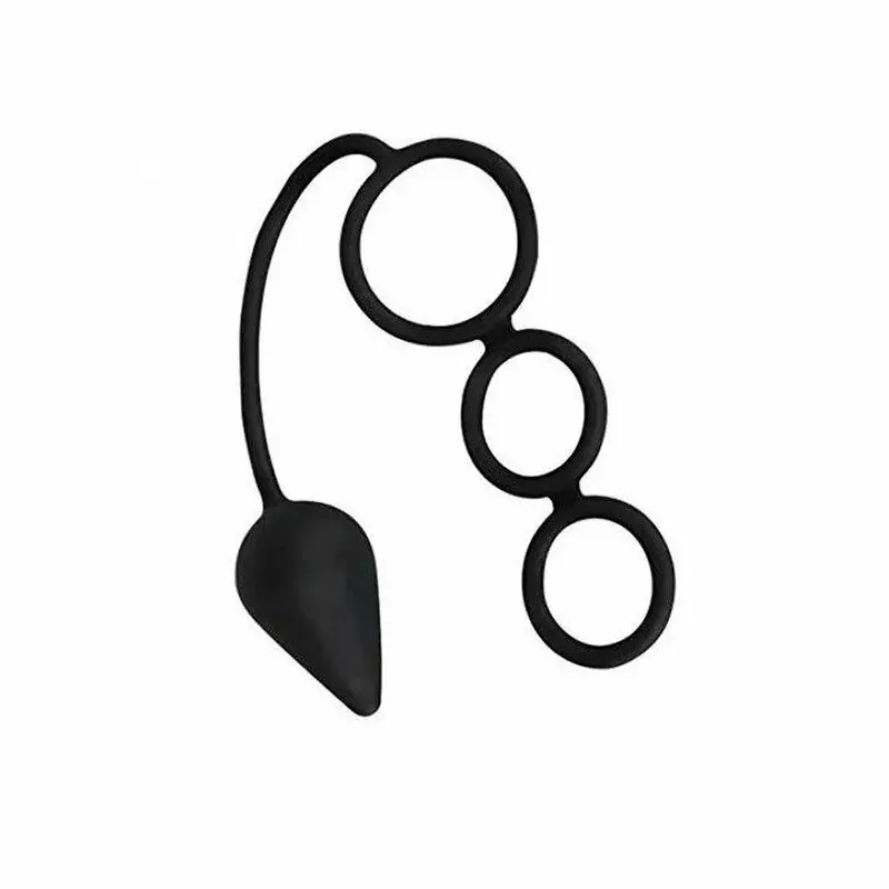 Іграшка являє собою конусоподібну анальну пробку, з'єднану з трьома кільцями різного діаметру.Два кільця з меншим діаметром надягають на пеніс - це дасть змогу не тільки отримати задоволення, а й потішити партнерку міцнішою і тривалішою ерекцією. Кільце з великим діаметром призначене для мошонки, обхват якої принесе чоловікові особливі відчуття. Посилить, і зробить сексуальні переживання ще яскравішими, вставлена в анус пробка, яка під час кожного руху стимулюватиме простату. Іграшка зроблена з силікону, не містить фталатів.Загальна довжина - 36 см, довжина мотузочки - 14 см, довжина пробки - 6,5 см, діаметр пробки - 1-3,9 см, діаметр кілець для пеніса - 3 см (тягнеться до 6 см), діаметр кільця для мошонки - 4,5 см (тягнеться до 10 см)