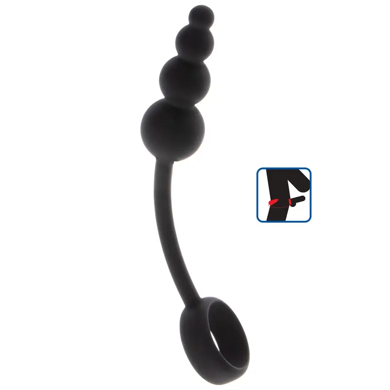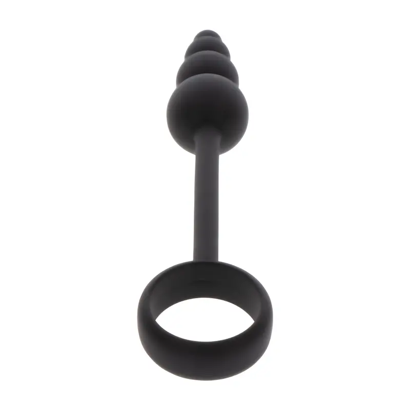 Игрушка сделана из бархатного силикона, состоит из анальной пробки в виде шариков и широкого эрекционного кольца. Пробка сужается к концу, шарики очень гладкие, потому oyJoy Manpower Anal Plug & Cock Ring легко вводится в интимную зону. Длинное соединение с кольцом позволяет с удобством зафиксировать само кольцо на основе пениса или мошонке. Кольцо будет поддерживать эрекцию и сделает член более чувствительным, тогда как параллельно анус будет стимулировать пробка.