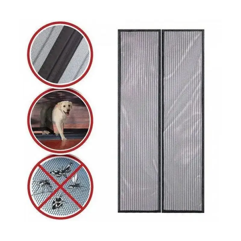 - не буде перегороджувати вашому руху. При Вашому русі стулки вироби м'яко розкриються, а потім відразу ж щільно зімкнутися за Вашою спиною. Завдяки наявності внизу кожної стулки спеціальних невеликих важків, їх полотна залишаються статичними і не розмикаються до тих пір, поки через них не пройде людина. Таким чином, в ваш будинок зможете зайти тільки ви і Ваші близькі, комахи туди зможуть потрапити, тільки якщо ви самі захочете їх впустити.