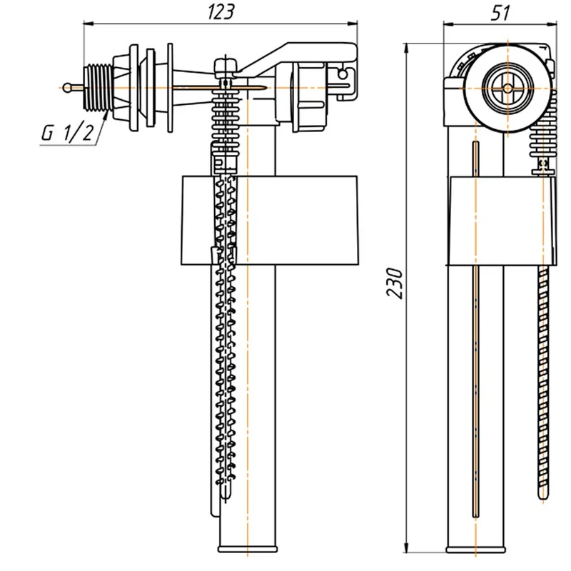 Арматура АНІ-ПЛАСТ для унітазу збоку, економ 1/2" пластик (WC5050)