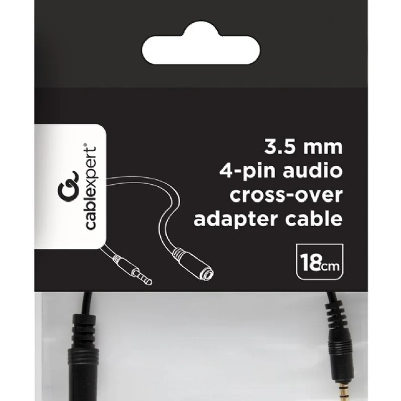 Аудіо-кабель Gembird CCA-419 3.5 мм - 3.5 мм (M/F), кросовер контактів GND і MIC, 0.18 м, чорний
