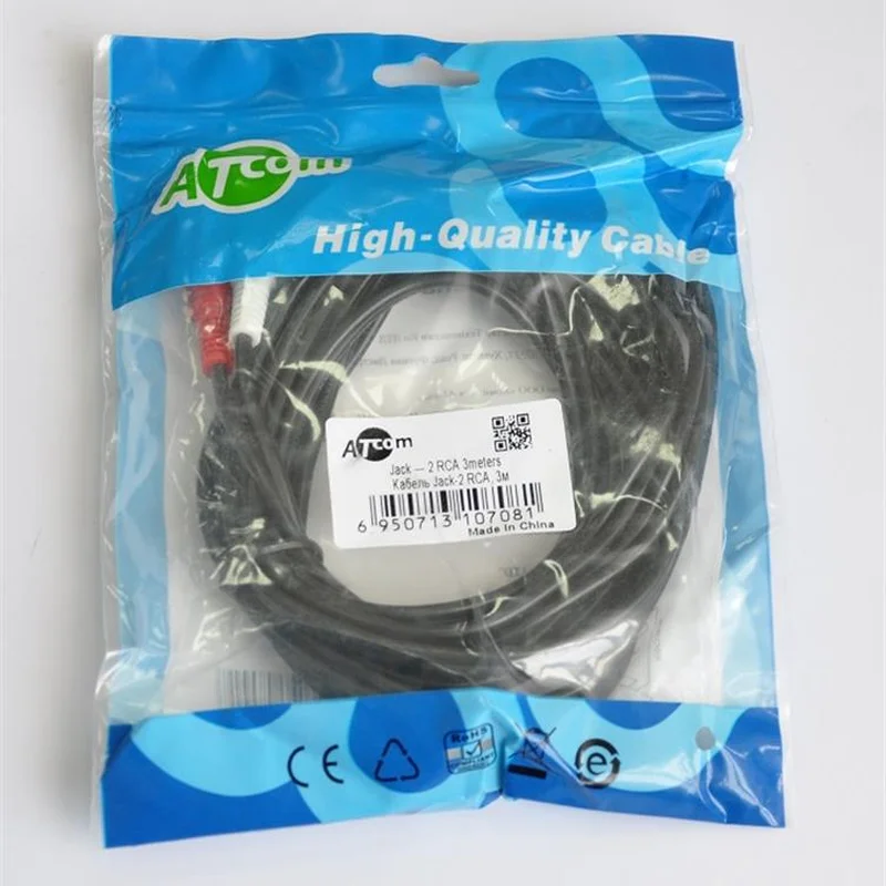 Аудіо-кабель Atcom (10708) mini-jack 3.5мм(M)-2xRCA-тюльпан(M) 3м пакет