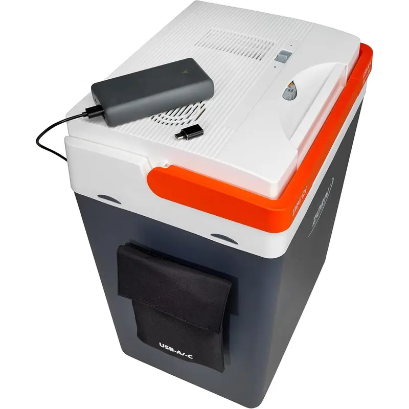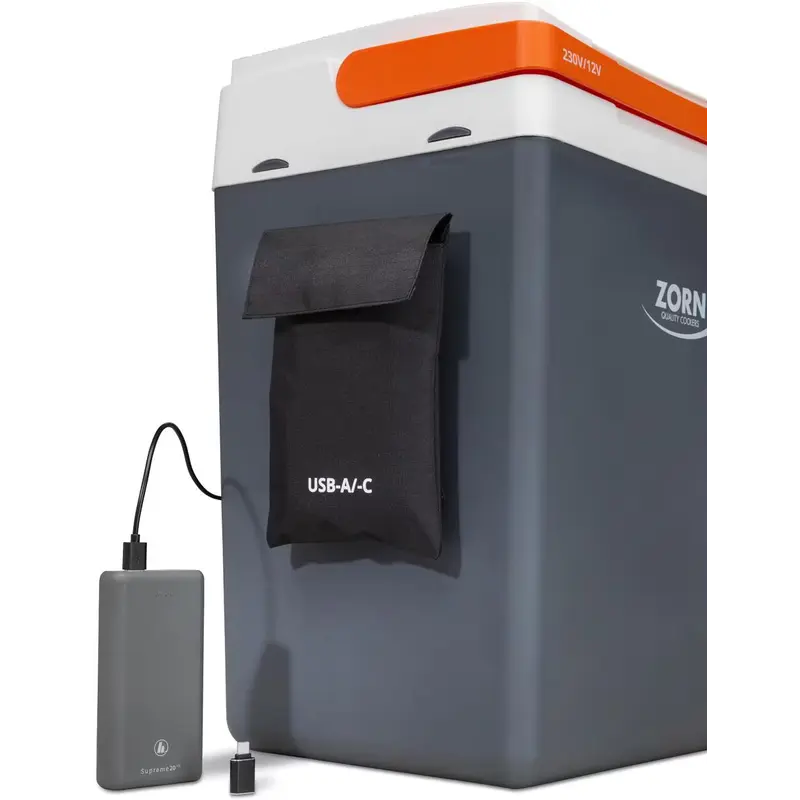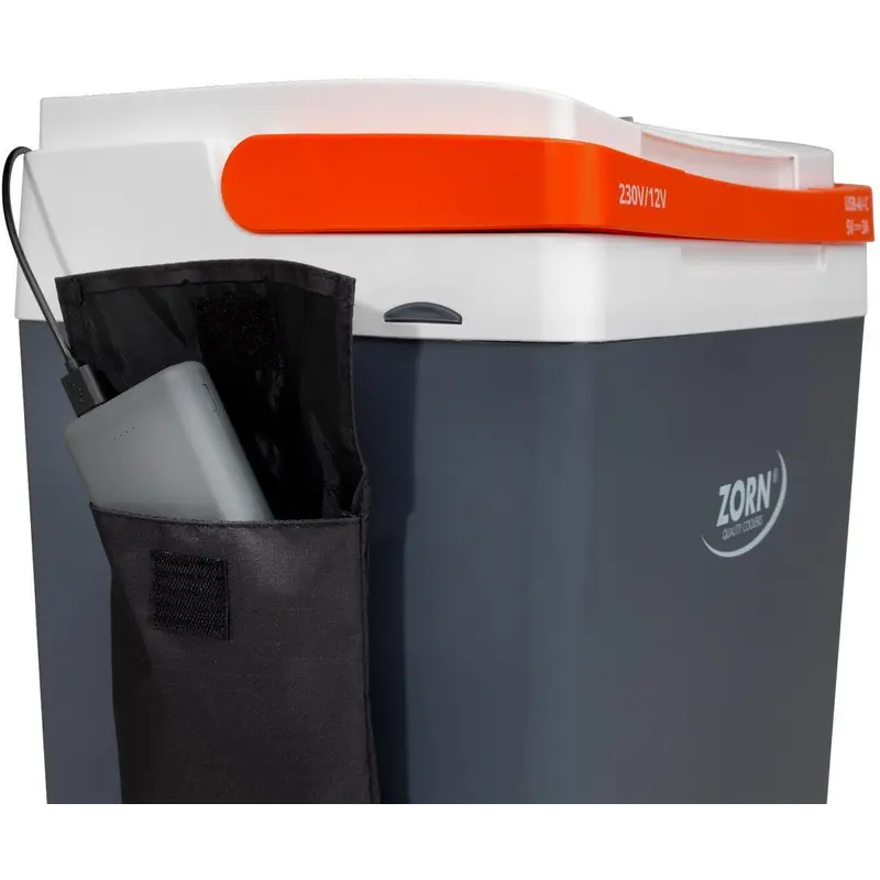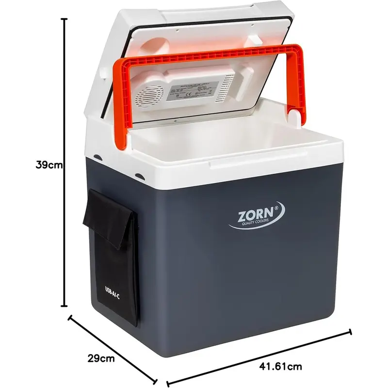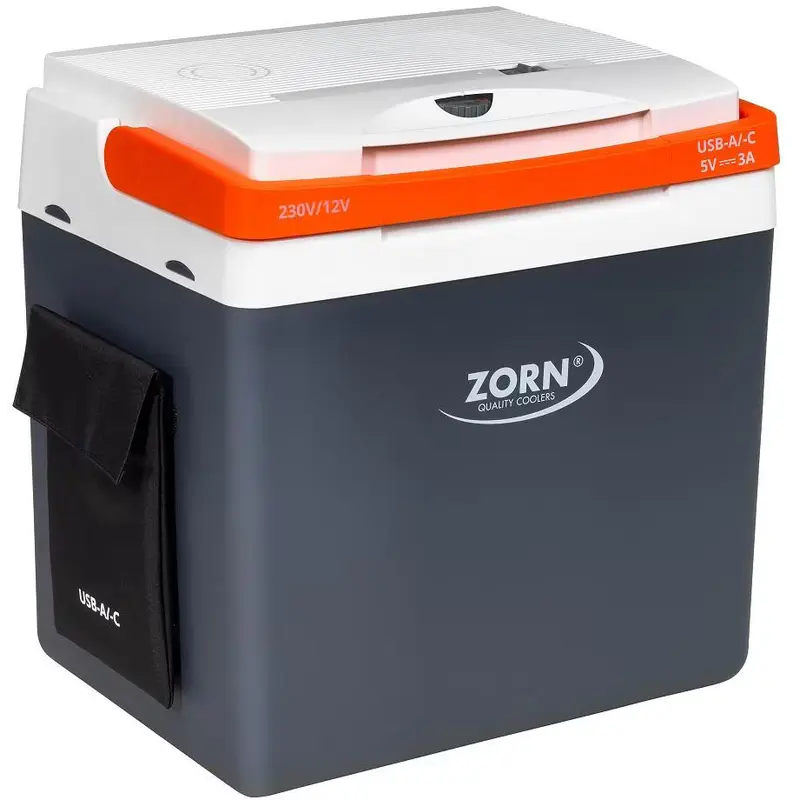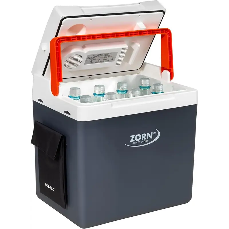 Автохолодильник Zorn Z-26 LNE + USB — це високотехнологічне та економічне рішення для підтримання необхідної температури в дорозі та на відпочинку. Він працює за термоелектричним принципом Пельт'є, не містить компресора й озоноруйнівних речовин, що робить його екологічним і безпечним. Завдяки системі енергозбереження EEI пристрій автоматично регулює споживання електроенергії при перемиканні між бортовою мережею 12V і побутовою 220/230V, дозволяючи економити до 40% енергії. Автомобільний холодильник не лише охолоджує (до +8…+14°C при температурі повітря +32°C), але й може нагрівати вміст до +60°C. Ергономічна ручка, вбудований вентилятор, міцний корпус і можливість підключення до USB живлення роблять Zorn Z-26 ідеальним супутником у дорозі. Додаткове відділення для кабелю живлення вмонтовано в кришку, а ущільнювач зменшує утворення конденсату та зберігає температуру всередині на тривалий час. Працює за технологією Пельт'є — не потребує компресора, екологічний, безшумний і довговічний; Система енергозбереження EEI автоматично оптимізує енергоспоживання при перемиканні між джерелами живлення 12V і 230V; Функції нагріву до +55°C і охолодження на «дельта T°» до 18–24°C нижче температури навколишнього середовища; Холодильник у машину може працювати від USB A/C через павербанк (5V/3A), забезпечуючи до 10 годин автономного охолодження (рекомендована ємність — від 24,0 Ah); Міцний корпус з ударостійкого пластику, внутрішня камера виготовлена з екологічно безпечного матеріалу, придатного для контакту з харчовими продуктами; Термоізоляція з PU-піни зберігає температуру тривалий час навіть без підключення до живлення; Оснащений двома вентиляторами — зовнішнім для постійного охолодження та внутрішнім для рівномірного розподілу температури; Електрична знімна кришка з фіксатором у закритому положенні й можливістю фіксації у напіввідкритому режимі — запобігає випадковому відкриттю під час транспортування; Зручне відділення в кришці для зберігання кабелю й автомобільного штекера 12V підвищує зручність експлуатації; Підходить для живлення від автомобільного прикурювача, побутової розетки та зовнішніх USB-пристроїв, що робить його універсальним у будь-яких умовах; Є можливість вертикального зберігання пляшок 1,0 л (висотою 30,5 см), 1,5 л (висотою 35 см); Вміщує 32 банки по 0,33 л або 8 пляшок по 1,0 л; Довжина кабелів: з’єднувальний кабель 12V + штекер для авто = 1,80 м, з’єднувальний кабель 230V = 1,60 м, USB-A/-C кабель = 60 см.
