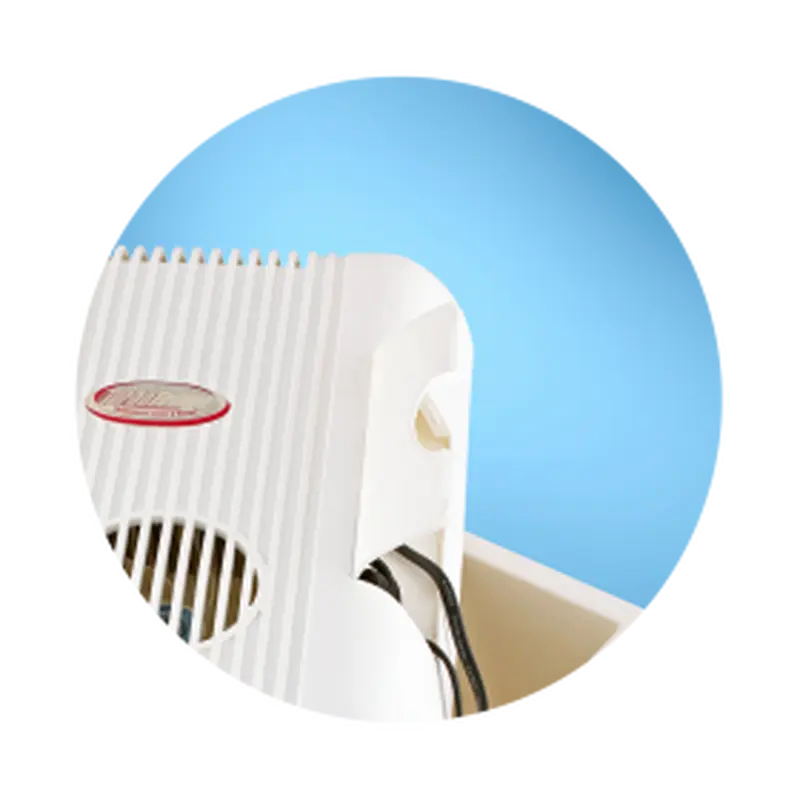 - Присутній вмонтований вентилятор, який стабільно забезпечує ефект охолодження. В результаті чого, продукція знаходиться всередині агрегату зберігає свою свіжість, а вода залишається охолодженої.