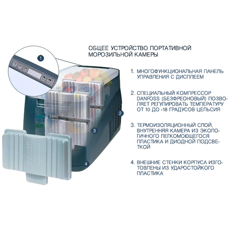 - Корпус автохолодильники виготовляється з ударопрочной пластмаси.