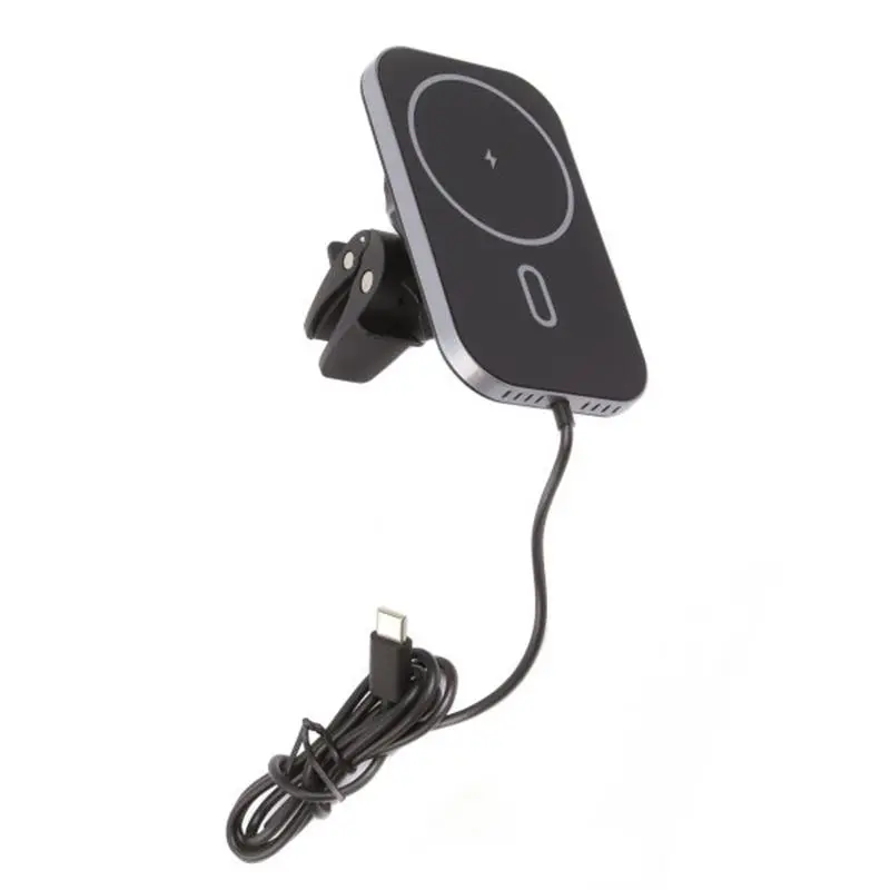 Сучасний бездротовий зарядний пристрій із кріпленням для автомобіля. Сумісний із MagSafe, підтримує сучасні технології швидкої зарядки. Особливості Сильне магнітне кріплення. Не страшна швидка їзда та трясіння Універсальний кулястий дизайн. Універсальне кріплення на 360° для комфортного огляду під будь-яким кутом 4 режими заряджання. Сумісний з 15 Вт, 10 Вт, 7.5 Вт, 5 Вт Надійна сумісність із адаптером. Порт Type-C, сумісний із швидкою зарядкою QC та PD, відповідає тенденціям ринку (адаптер у комплекті) Високоякісна текстура. Дизайн ABS+PC, високоякісна текстура, красива та стильна Простота експлуатації. Простота в експлуатації, що не закриває лінію огляду автомобіля Повністю сумісний з iPhone 12/13/14