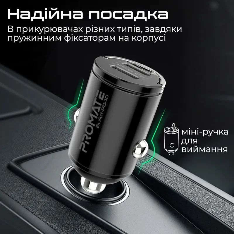 Автомобільний зарядний пристрій Promate Bullet-PD40 Black