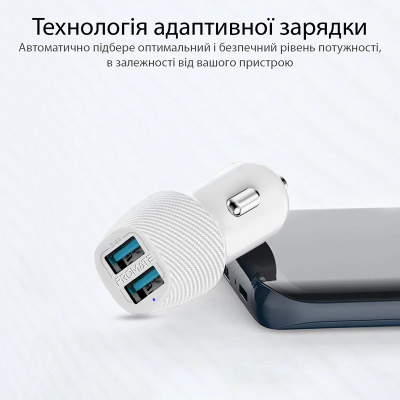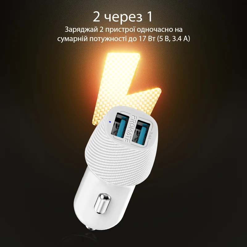 Автомобільний зарядний пристрій Promate Voltrip-Duo White