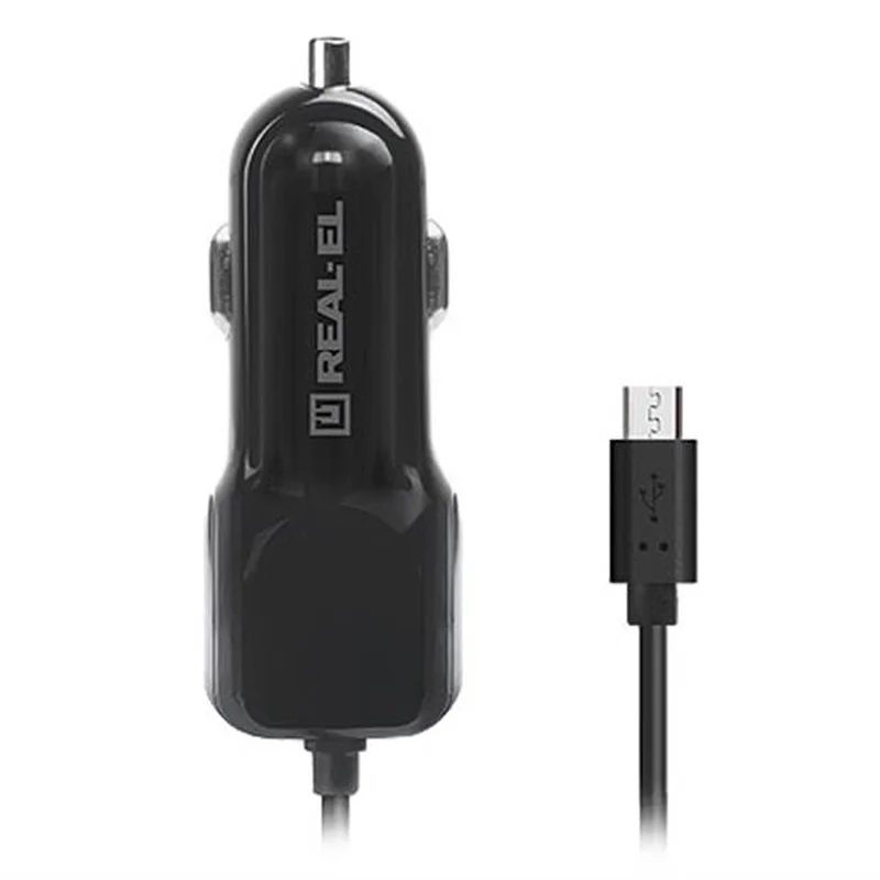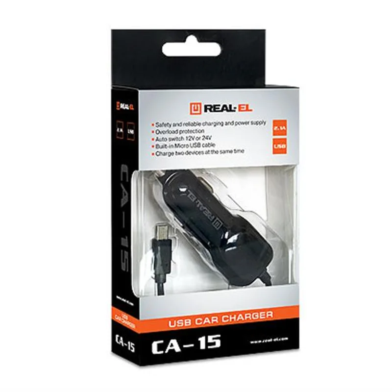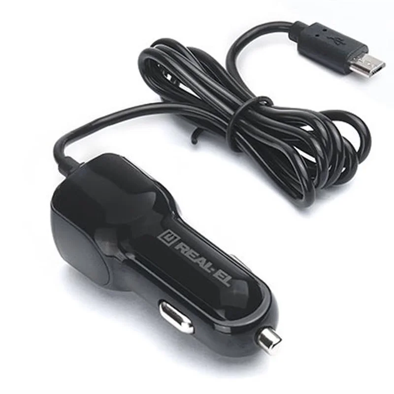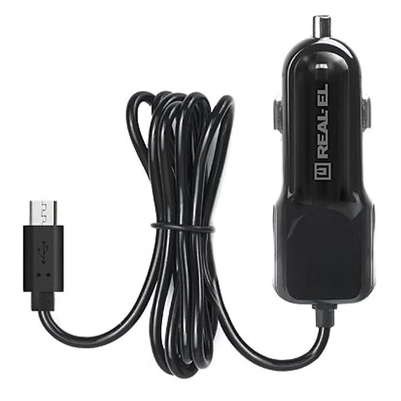 Автомобільний зарядний пристрій REAL-EL CA-15 (2USB, 2.1A) Black + кабель microUSB