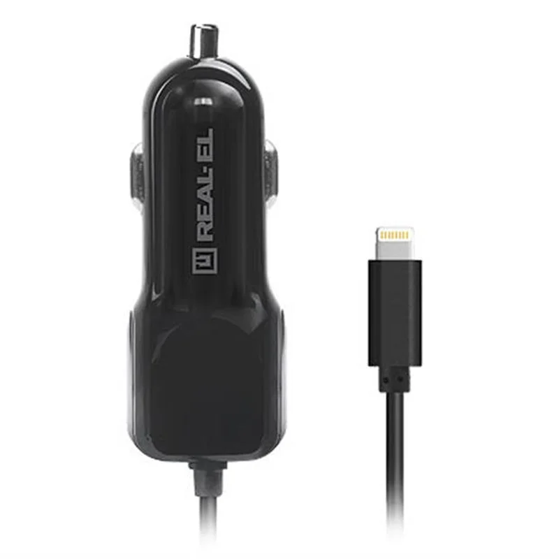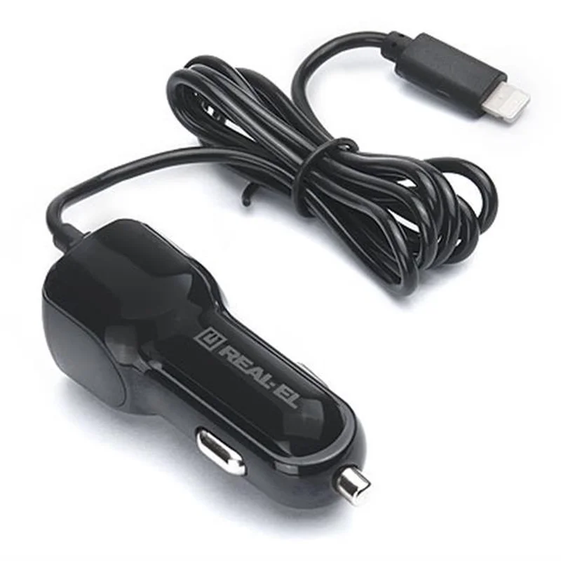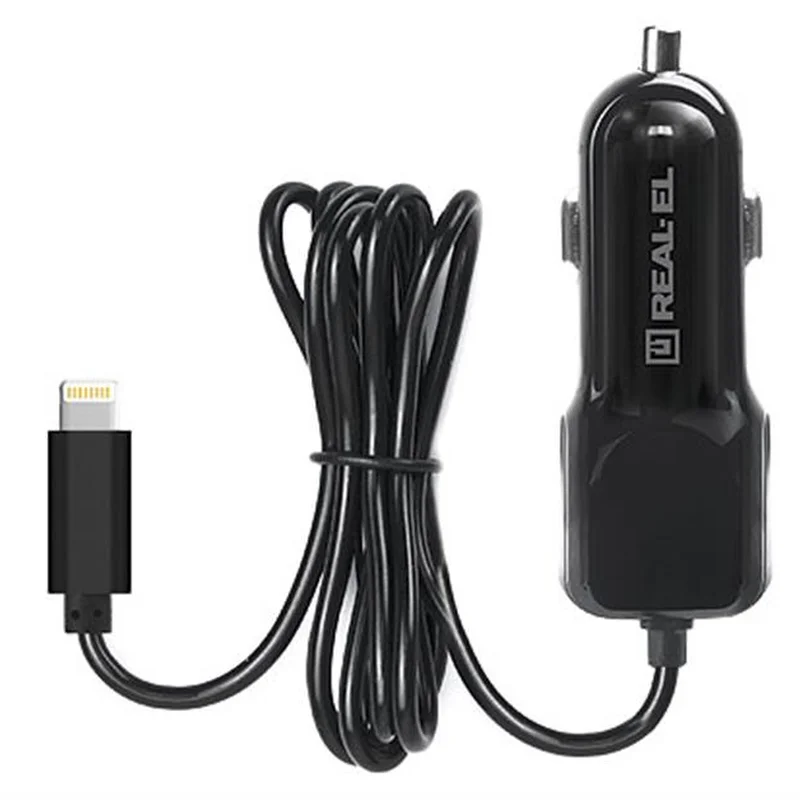 Автомобільний зарядний пристрій REAL-EL CA-17 (2USB, 2.1A) Black + кабель Lightning