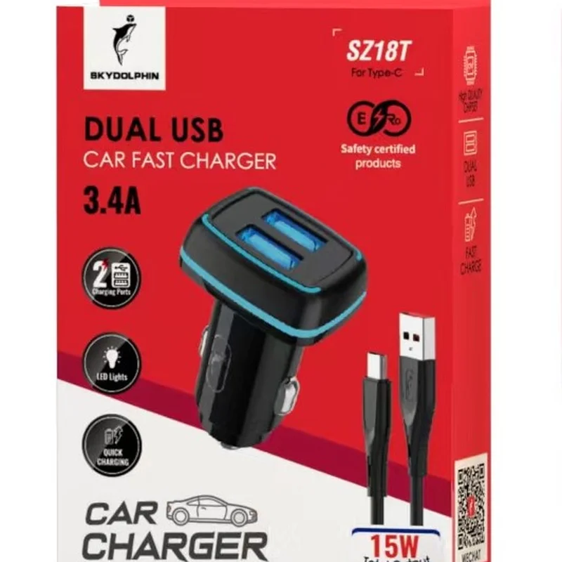 Автомобільний зарядний пристрій SkyDolphin SZ18T (2USB, 3.4A) Black (AZP-000100) + кабель Type-C