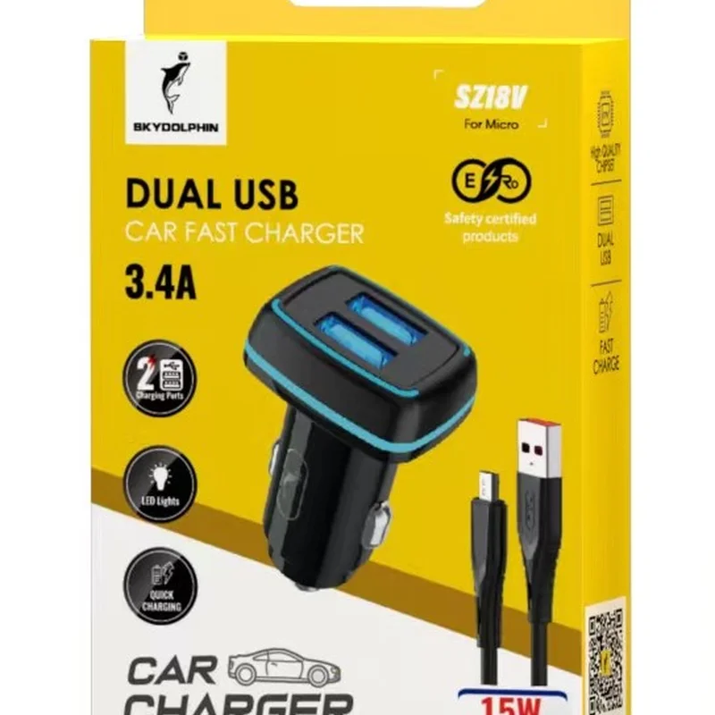Автомобільний зарядний пристрій SkyDolphin SZ18V (2USB, 3.4A) Black (AZP-000101) + кабель microUSB