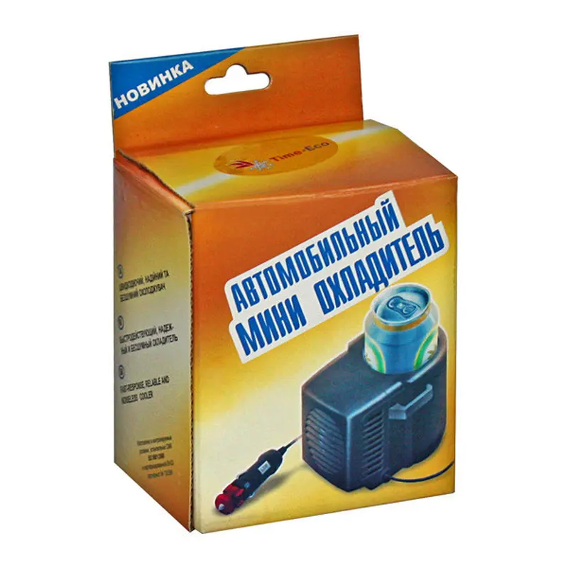 Він є електричним приладом, в якому застосовано екологічно чистий, напівпровідниковий термоелектричний агрегат. Корпус приладу виконаний з пластика АБС. Усередині корпусу розташовані елементи холодильного агрегату. Банку з напоєм встановлюється в ложемент приладу. Шнур живлення міні охолоджувача оснащений штекером для підключення до гнізда прикурювача автомобіля.