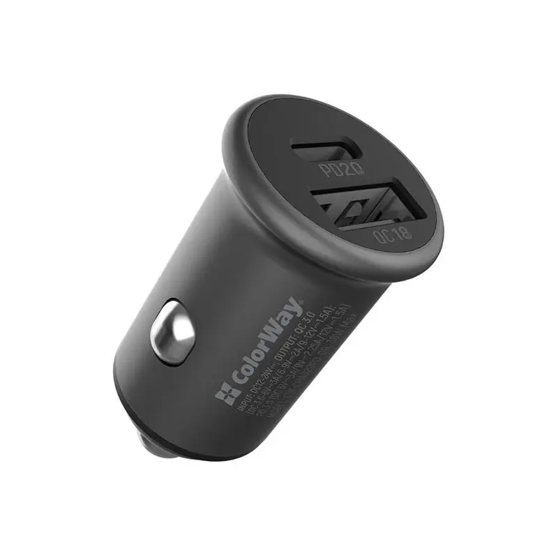 Автомобільний зарядний пристрій Colorway 2USB (Type-C PD20W + USB QC3.0) (38W) Gray - це потужний адаптер який ідеально підходить для зарядки Apple iPhone 12 Pro / 12 Pro Max / 12 mini / 12/11 Pro / 11 Pro Max / 11 / SE / XS / XS Max / XR / X / 8/8 Plus, Apple iPad Pro 12.9 / iPad Pro 11 "/ iPad Pro 11". Два незалежних порти з підтримкою протоколів швидкої зарядки Quick Charge 2.0 & 3.0, PD 3.0 Samsung AFC, Huawei SCP. Автоматичне балансування навантаження між портами. Інтелектуальна мікросхема, визначає тип підключеного пристрою, регулює напругу і силу струму до 3А і сумарною вихідною потужністю в 38 Вт, забезпечуючи швидку зарядку і високу сумісність з пристроями більшості брендів. Зарядний пристрій оснащений розумним чіпом для захисту ваших пристроїв від короткого замикання, перенапруги, перегріву і перевантаження по струму. Вогнестійкий корпус PC не буде перегріватися при зарядці, забезпечуючи відмінну продуктивність, незалежно від подряпин, ударів або падінь. Захистіть себе і своє обладнання зсередини.