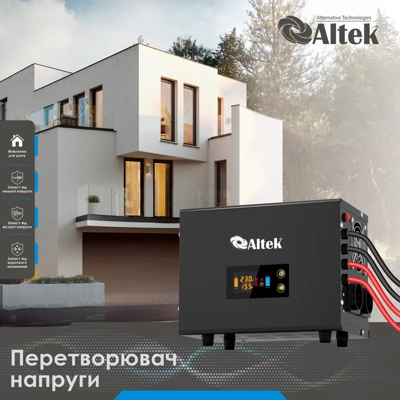 Автономний перетворювач напруги з зарядним пристроєм ALTEK ASU12 1000W DC12V