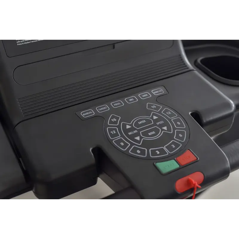 Бігова доріжка Toorx Treadmill Voyager Plus (VOYAGER-PLUS) від італійського виробника Garlando S.p.A. призначена для спортивної ходьби та бігу в домашніх умовах. Модель розрахована на максимальну вагу користувача до 120 кг і має потужний двигун постійного струму 3 к.с., який дозволяє розвивати швидкість від 1 до 20 км/год. Бігове полотно розміром 141 х 48 см із можливістю регулювання нахилу від 0 до 15% як кнопками на панелі керування, так і за допомогою кнопок, розташованих на поручнях. Система амортизації Soft Tech знижує навантаження на суглоби та мінімізує ризик отримання травми в процесі занять. Консоль тренажера з LED-дисплеєм оснащена різноманітними програмами як для підготовлених користувачів, так і для початківців. Бездротовий датчик вимірювання пульсу буде доречним під час тренування по одній із чотирьох пульсозалежних програм. Бігова доріжка Toorx Treadmill Voyager Plus (VOYAGER-PLUS) має складану конструкцію та транспортувальні ролики, завдяки чому її легко переміщати по квартирі.