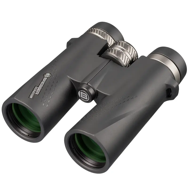 BRESSER Condor 10x42 UR Coating WP (1821043) - надзвичайно легкий бінокль, і завдяки своїй водонепроникності та азотному наповненню ідеально підходить для використання в будь-яких погодних умовах. Наглазники поворотно-висувні з декількома фіксованими положеннями дають можливість комфортно вести спостереження в окулярах і без них. Діоптрійна корекція - стандартна. Ця модель оснащена призмами BaK-4 зі спеціальним покриттям UR, яке пропускає в очі ще більше світла. Крім того, всі біноклі Condor повністю покриті багатошаровим покриттям для кращого світлопропускання. Окуляри та колесо фокусування виготовлені із міцного металу.