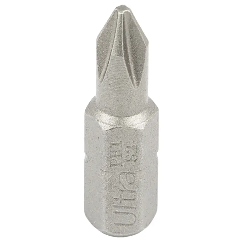 Викруткові біти ТМ ULTRA призначені для професійного використання. Виготовлені з легованої інструментальної сталі S2 з поверхневим зміцненням до твердості 58-61 HRC струмами високої частоти (СВЧ). Мають проточенну головну частину для роботи у вузьких місцях. Точна форма робочої частини забезпечує ідеальну фіксацію в шліцах гвинтів, шурупів, саморізів і т.д. Бічна поверхня відполірована.