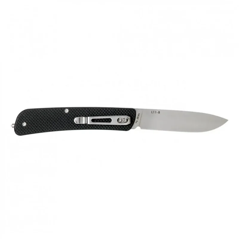 Накладки на рукоять виготовлені з зносостійкого полімерного матеріалу G10, який славиться своєю міцністю і довговічністю. А завдяки фактурної поверхні і ергономічною формою рукояті, модель L11 зручно утримувати практично будь хватом. В асортименті нашого інтернет-магазину представлено 3 варіації даного ножа: з чорними, коричневими і темно-зеленими накладками на рукоять.