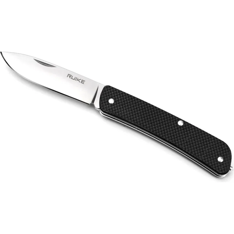 Фіксація леза ножа Ruike L11 у відкритому положенні здійснюється за допомогою замка типу Slip-Joint. Даний механізм має найпростішу конструкцію і по суті, являє собою масивну металеву пластину, розташовану в «спинці» ножа. В представленій моделі дана деталь також виконує роль бекспейсера.