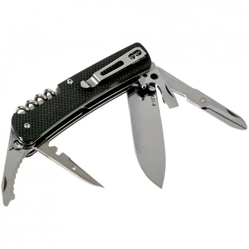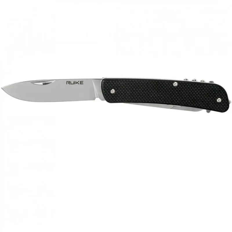 Крім клинка з прямою заточкою, модель Ruike L31 також має підвантажені ножиці, невелике лезо з хвилеподібною заточкою, викрутку з прямим шліцом, поєднану з відкривачкою, багатофункціональний шило, відкидне вушко для кріплення темляка, штопор, склобій, а також знімні щипці, «заховані» в одній з «пластин» рукояті.