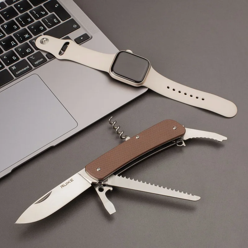 Бренд Ruike швидко набуває популярності, адже під ним випускаються якісні і довговічні складні ножі. Наприклад, модель L32 призначається для використання як на щоденній основі, так і в заміських поїздках. Це багатофункціональний ніж, в якому об'єднані відразу кілька корисних інструментів. Основним з них є гладко клинок заточений розміром 85 мм. Він має товщину по обуху 3 мм і цілком підходить для роботи не тільки з продуктами харчування, але і з різними іншими матеріалами. Для виготовлення всіх інструментів використовується нержавіюча сталь марки12С27. Це нержавійка шведського виробництва, що широко застосовується у виробництві туристичних та інших ножів. Її якості добре збалансовані і метал є одночасно твердим, але не тендітною, корозійностійким, добре зберігає заточку. До її складу входять такі легуючі елементи, як хром, марганець, молібден і кремній. Ця сталь загартовується при низьких температурах до твердості 58-59.