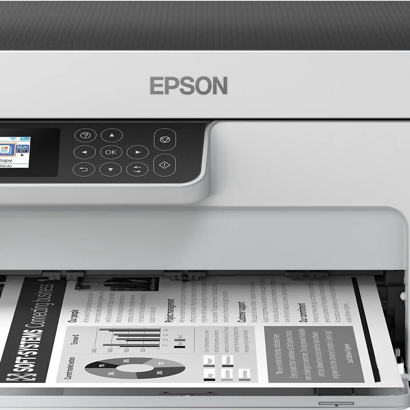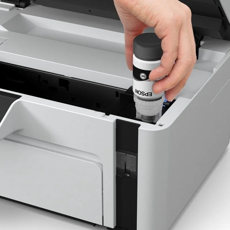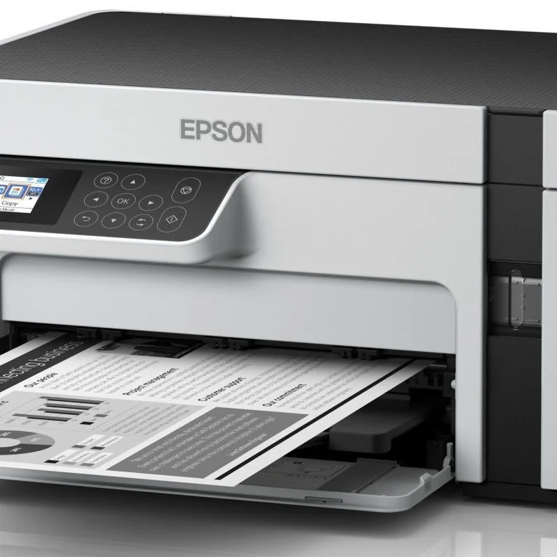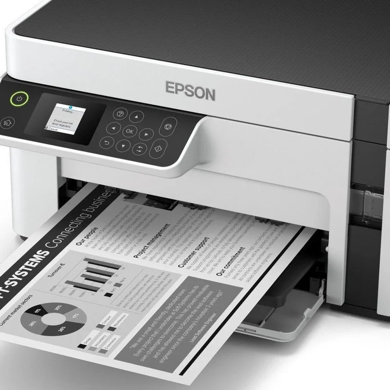 Epson M2120 - цей компактний монохромний пристрій 3 в 1 (принтер-сканер-копір) з підтримкою підключення по Wi-Fi і Wi-Fi Direct. Як і інші моделі серії "Фабрика друку" БФП Epson M2120 використовує вбудовані місткості для чорнила, замість картріджів. Набору чорнила в комплекті постачання вистачить на 3 роки друку без дозаправки! Крім того, "Фабрика друку" використовує запатентовану п"єзоелектричну технологію Epson Micro Piezo, яка, на відміну від інших технологій друку, не вимагає нагріву чорнила, тобто споживає значно менше електроенергії.