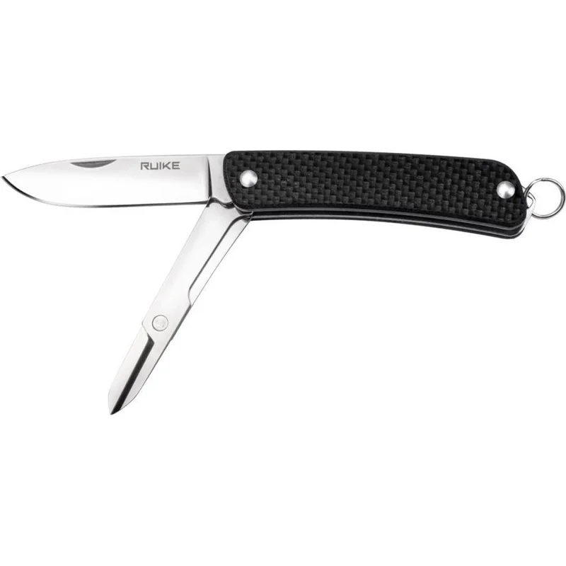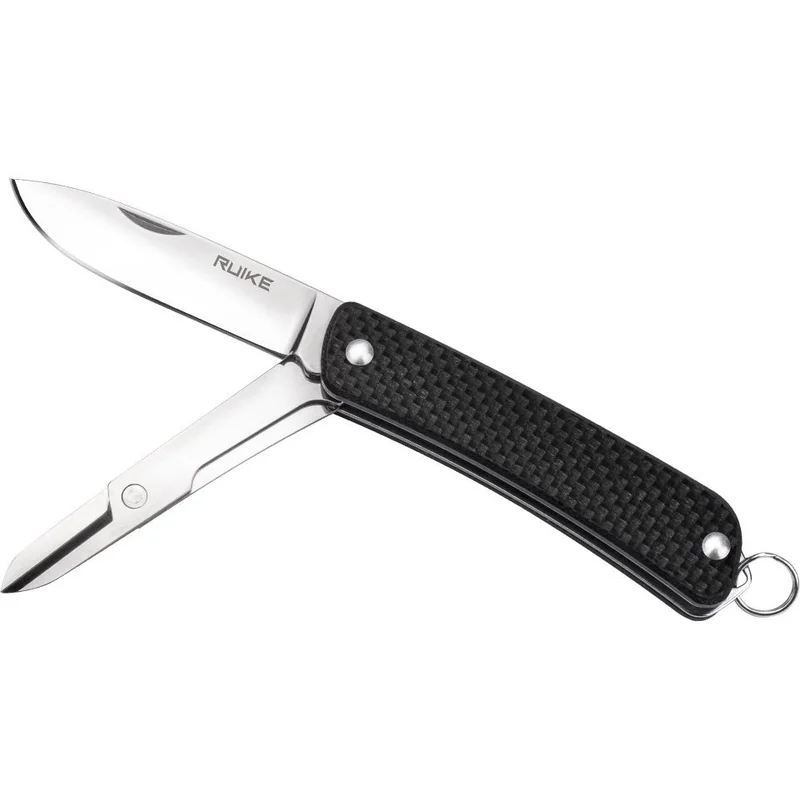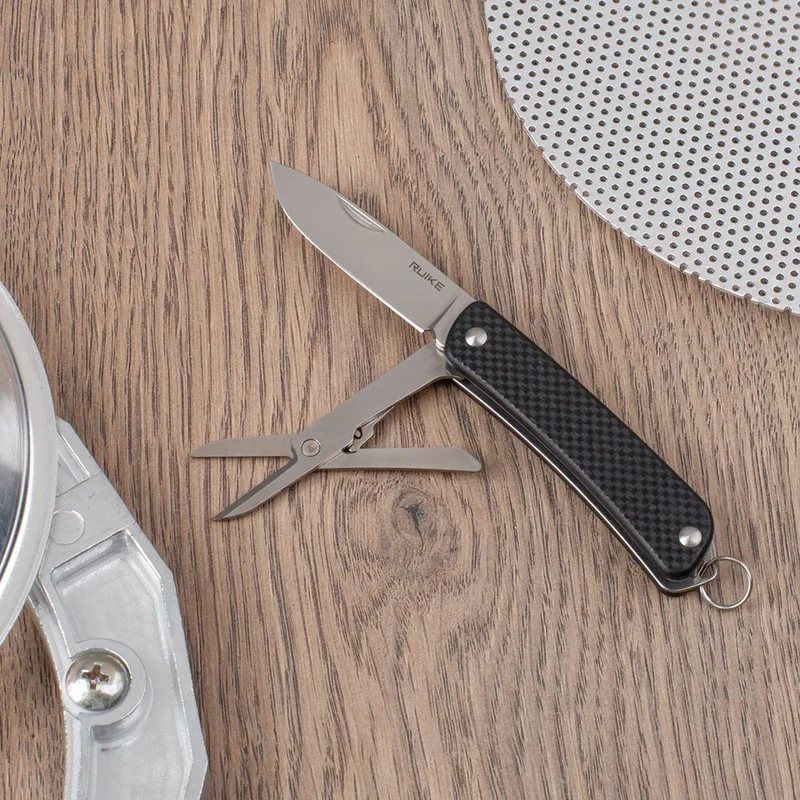 Крім ножа модель Ruike S22 володіє ще одним робочим інструментом – складними ножицями. Вони розміщені всередині рукоятки абсолютно по тому ж принципу, що і перший інструмент. Наявність цієї додаткової функціональності допомагає користувачеві виконати більшу кількість завдань, які можуть бути актуальними в поїздках на природу.