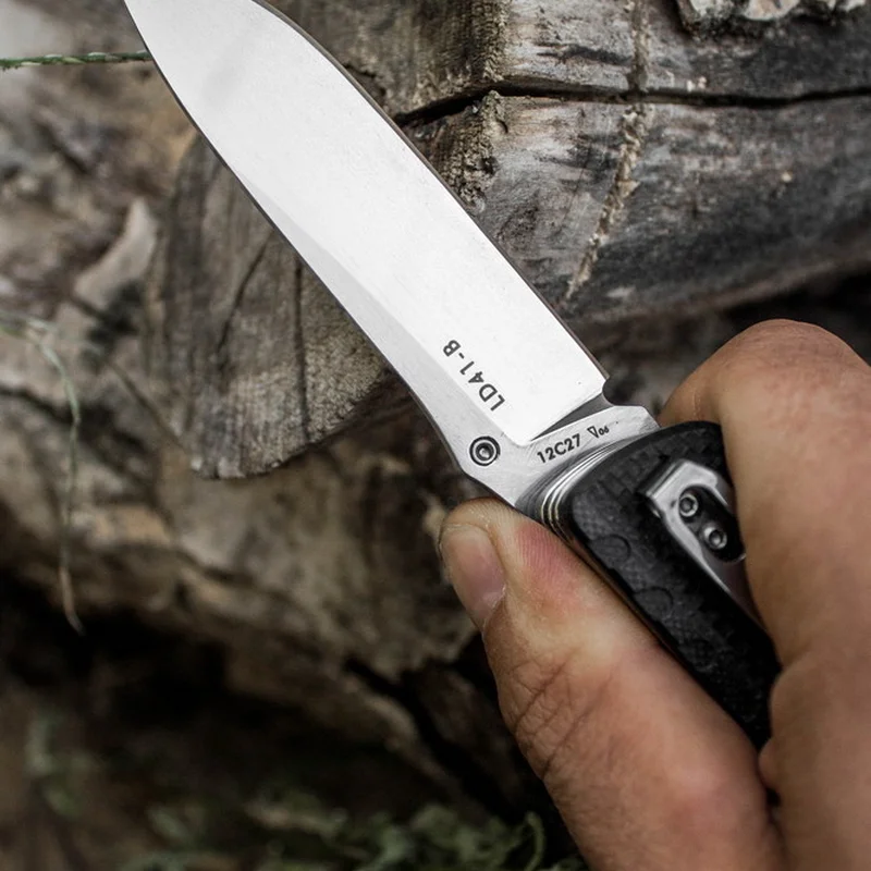 Всі інструменти, в тому числі і основний широкий клинок, виготовляються зі сталі 12С27 шведського виробництва. У цього металу висока міцність, так що можна налягати на Ruike LD41 без побоювання його погнути. Стійкість до корозії у нього теж досить висока, так що навіть після знаходження в умовах високої вологості, іржа не з'являється. Виконувати заточування і полірування досить просто, так як твердість сталі досягає 59 HRC. Також ріжучі кромки довгий час не тупляться і залишаються гострими.