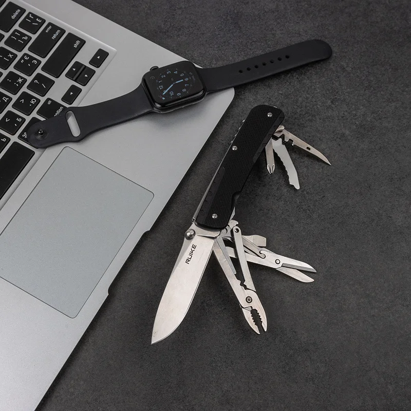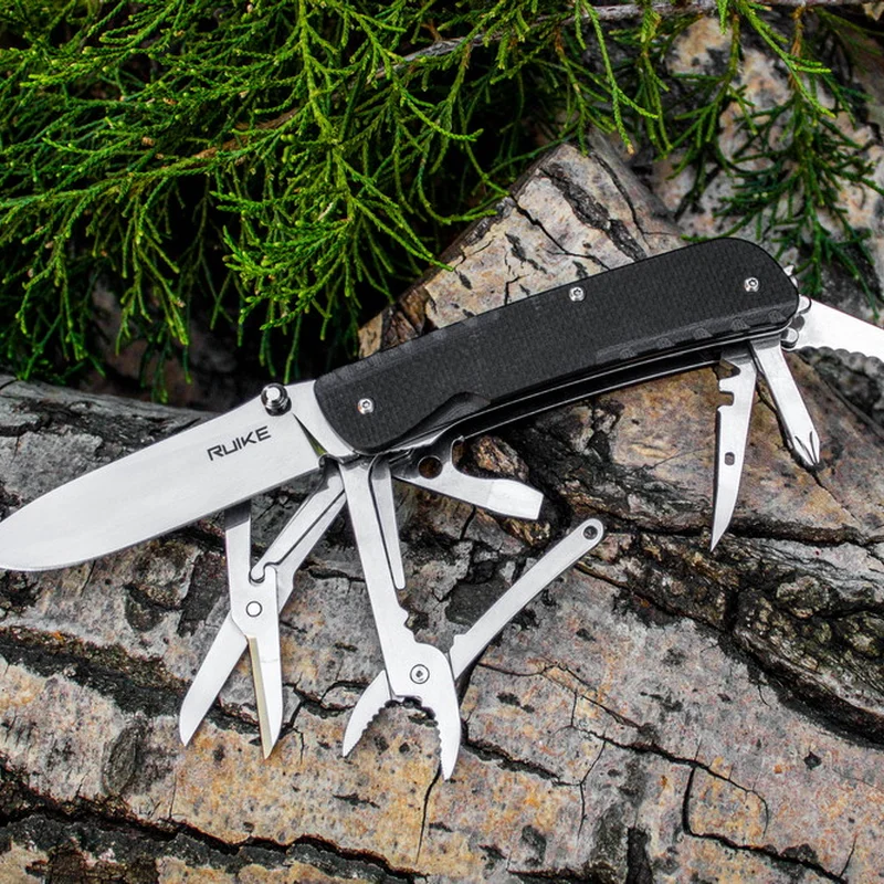 У наборі Ruike LD41 знаходиться аж 21 інструмент, не рахуючи основного широкого клинка. Присутні такі елементи: плоскогубці, ножиці, 2 види кусачок, загин для дротів, кілька прямих викруток і одна хрестова, розгортка, шило, штопор, відкривачка для пляшок, інструмент для зняття ізоляції, гайковий ключ, висуваються кільце для темляка і пінцет. Підібрані тільки корисні інструменти, які зможуть стати у нагоді людям з різними захопленнями.