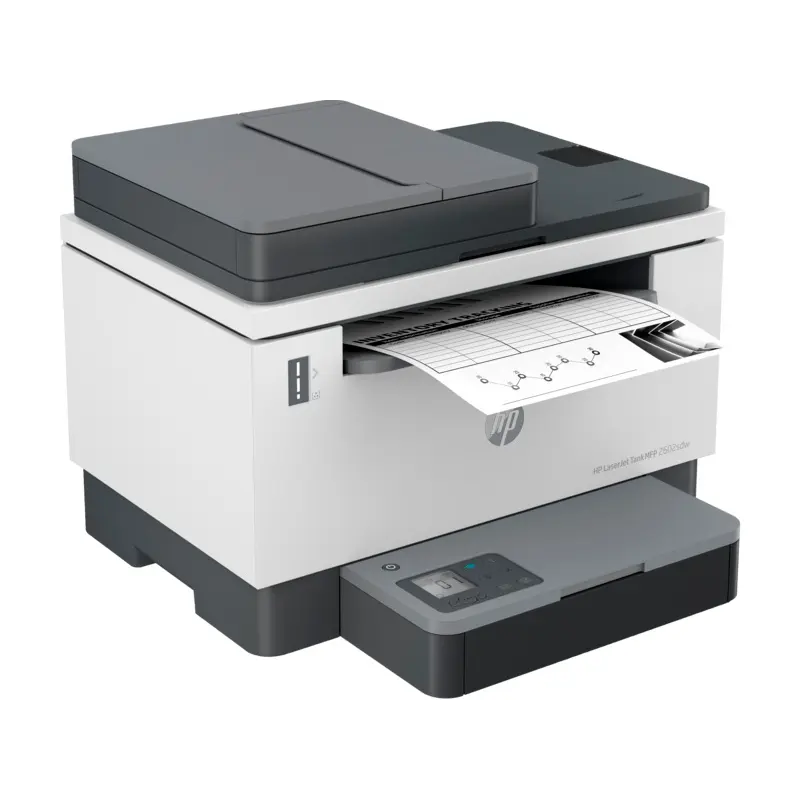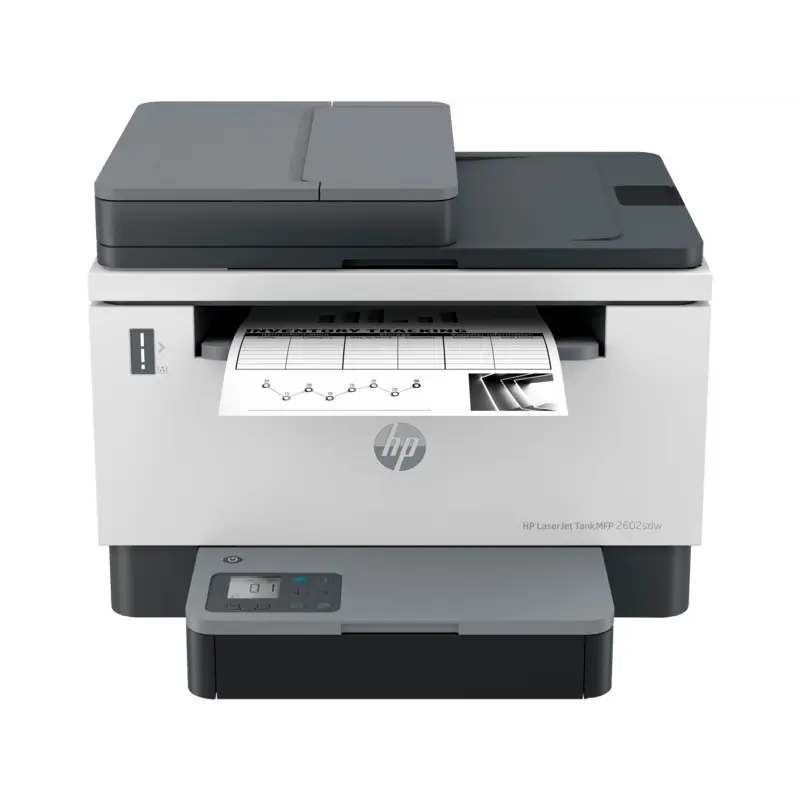 МФУ HP LaserJet Tank 2602sdw, заздалегідь заправлене оригінальним тонером HP для друку до 5000 сторінок, допомагає скорочувати витрати на друк та розширює можливості вашого підприємства. Високоякісний друк із наднизькою вартістю відбитка Попереднє заправлення тонером HP для друку до 5000 сторінок дозволяє скоротити експлуатаційні витрати. Знижуйте вартість відбитка завдяки комплекту заправки з тонером HP. Проста заправка оригінальним тонером HP лише за 15 секунд. Скорочуйте час простою та поповнюйте тонер лише за 15 секунд завдяки комплектам для заправки тонером HP надвисокої ємності. Висока продуктивність завдяки повному набору функцій. Працюйте ефективніше завдяки функції двостороннього друку, автоподатчику на 40 аркушів, барабану перенесення зображень з ресурсом 50 000 сторінок та програмі HP Smart.